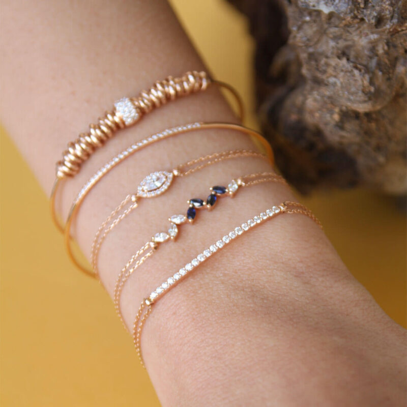 Zümrüt, yakut, safir ve pırlantanın farklı formlar ve kesimlerle bir araya gelerek özümüzdeki benzersiz bireyselliğe dikkat çektiği DNA Koleksiyonu, kendimizi keşfetmeyi hedefleyen içsel bir yolculuğu simgeliyor.